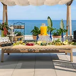 ארוחת הבוקר בופה מוגשת בבוקר במסעדה. מסעדה עם תפריט רחב Bermuteria מכינה ארוחות ים תיכוניות. ישנו גם כן בר במרפסת.